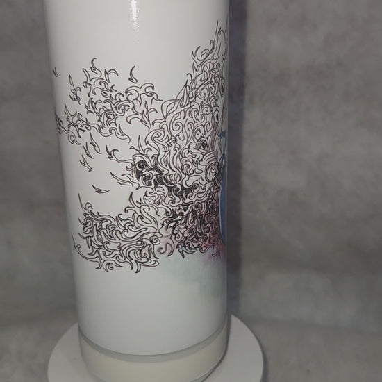 Removable speaker, tumbler top and can cooler top and charging cord. Holds regular and skinny cans. 18 oz stainless steel, insulated wine tumbler. Design is sublimation, please avoid extreme heat like a hot car or dishwasher. Handwashing is recommended. Please see photos as they are part of the description.
