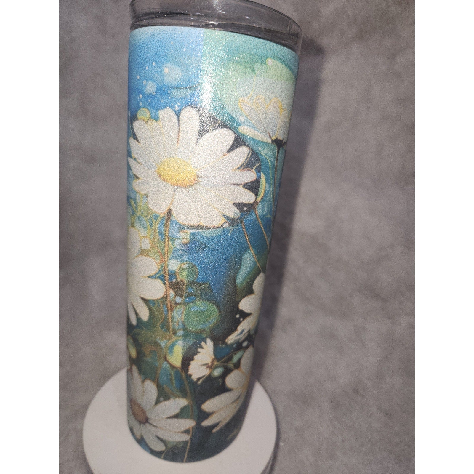 20 oz Stainless Steel Glitter Tumbler Flowers Daisy Dasies