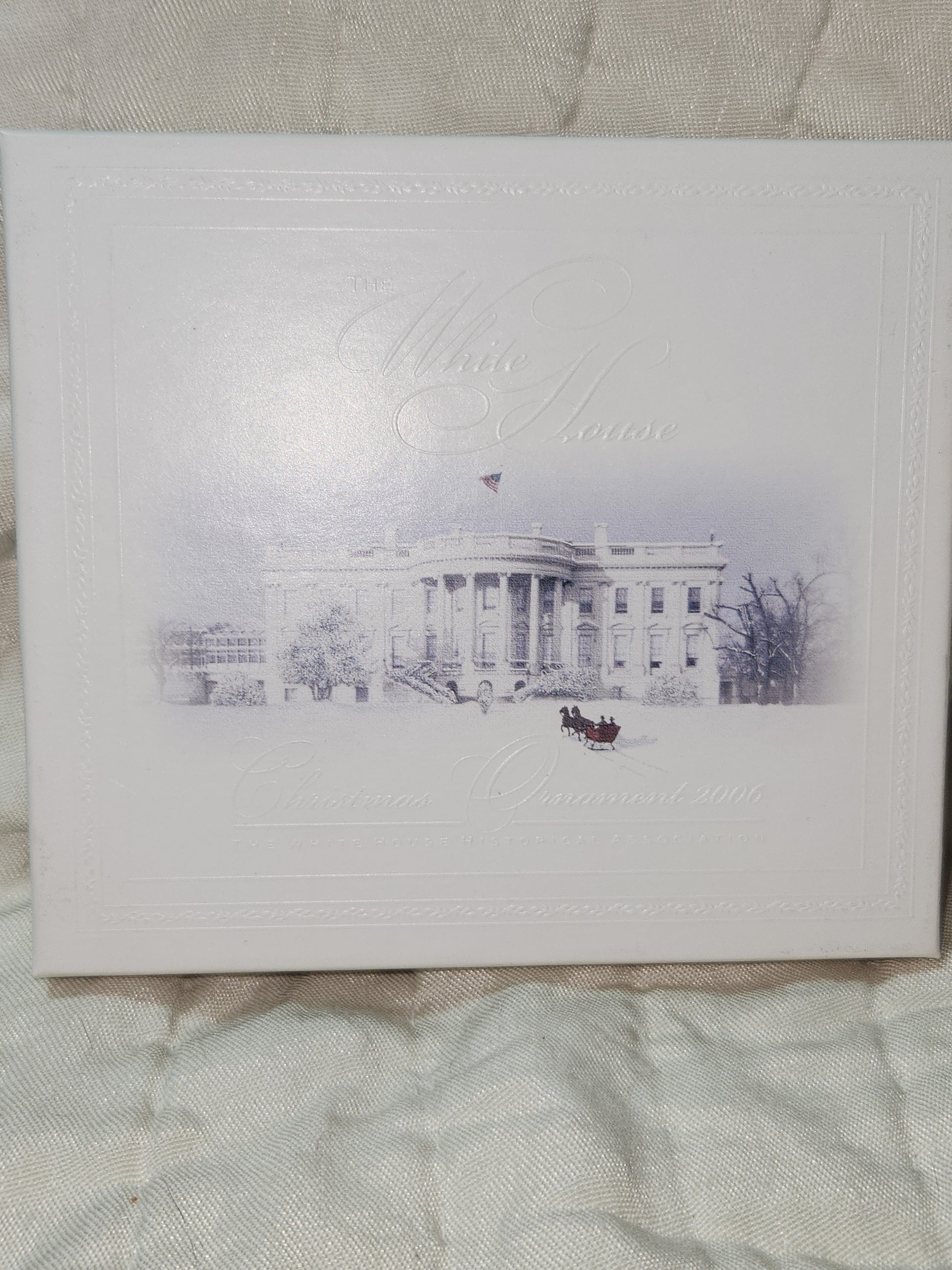 This is the annual white house historical association christmas ornament. It is beautiful and full of detail. It is in new condition, I do not know if it was used or not. It has its original box. Please see photos as they are part of the description. This ornamanet does have the little booklet about President Chester A. Arthur and his Christmas in the white house.