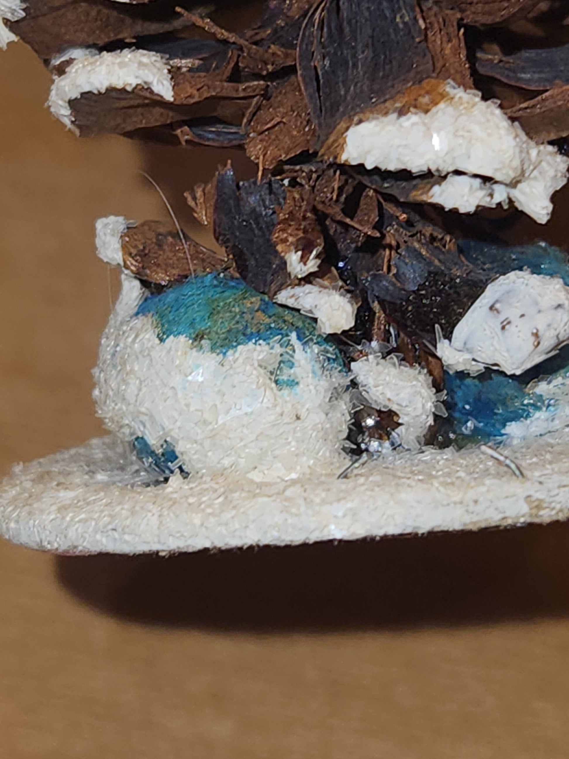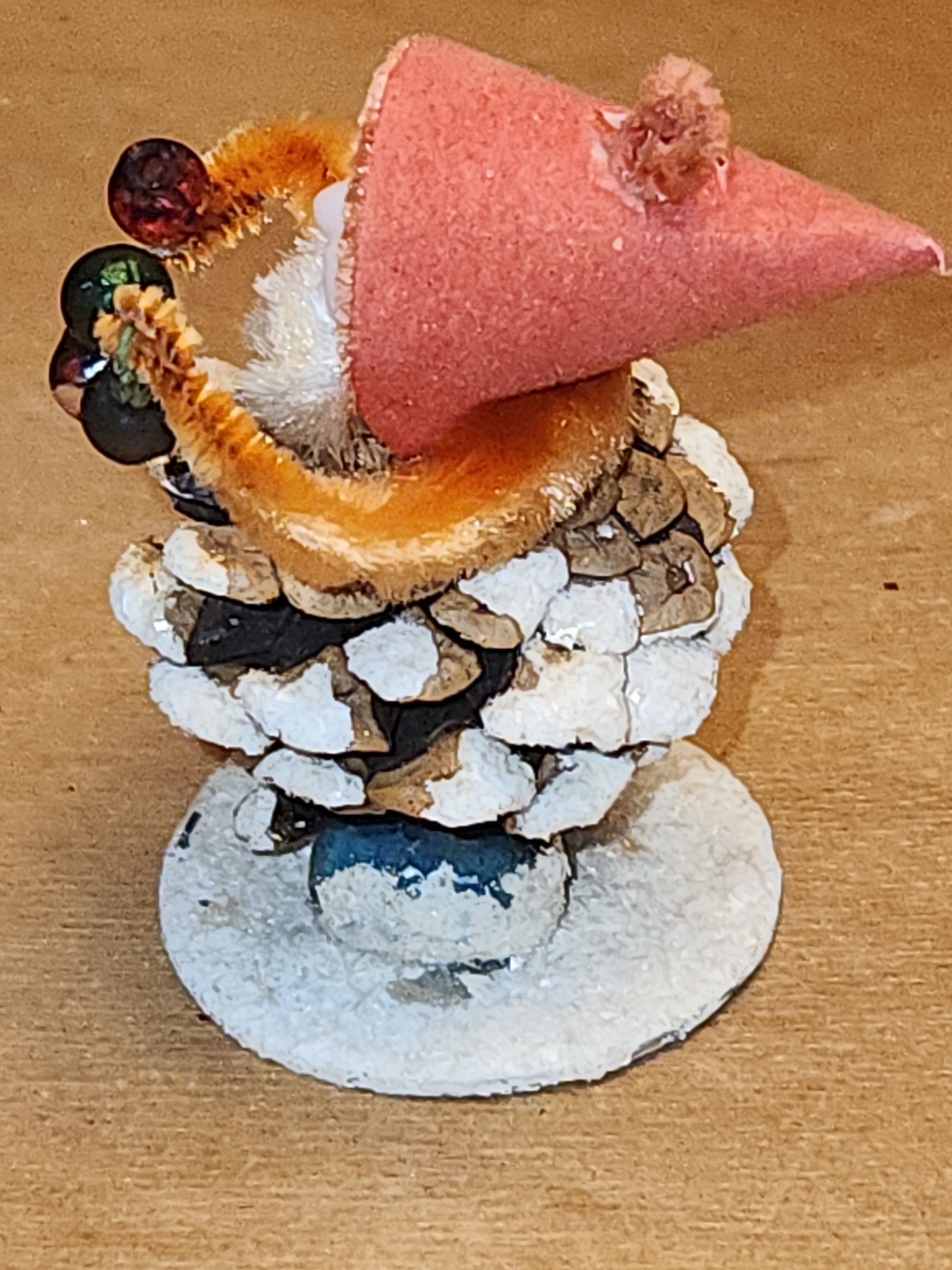 Vintage Pinecone Elf Gnome Dwarf with Maracas Band Ornament Chenille Plastic Face Mica Putz elf21
