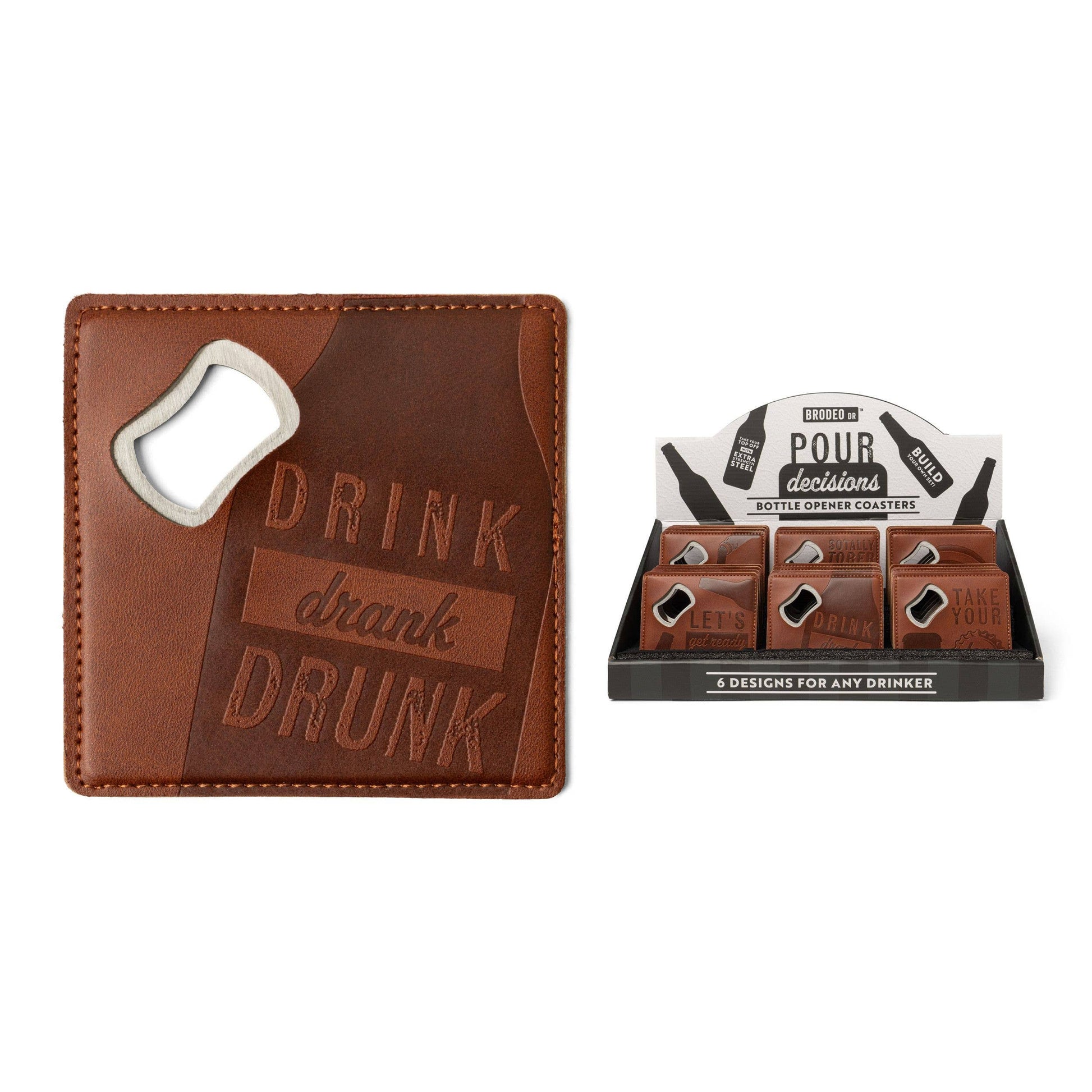 Leather and Metal Bottle Opener Coaster "drink drank drunk" lc6 ONE COASTER