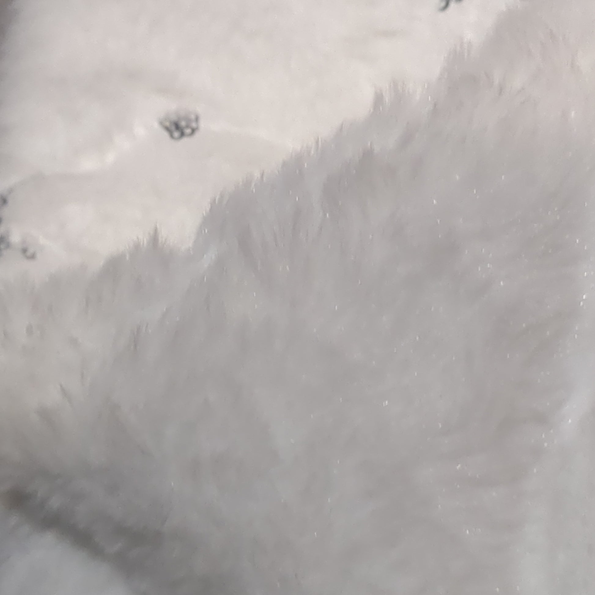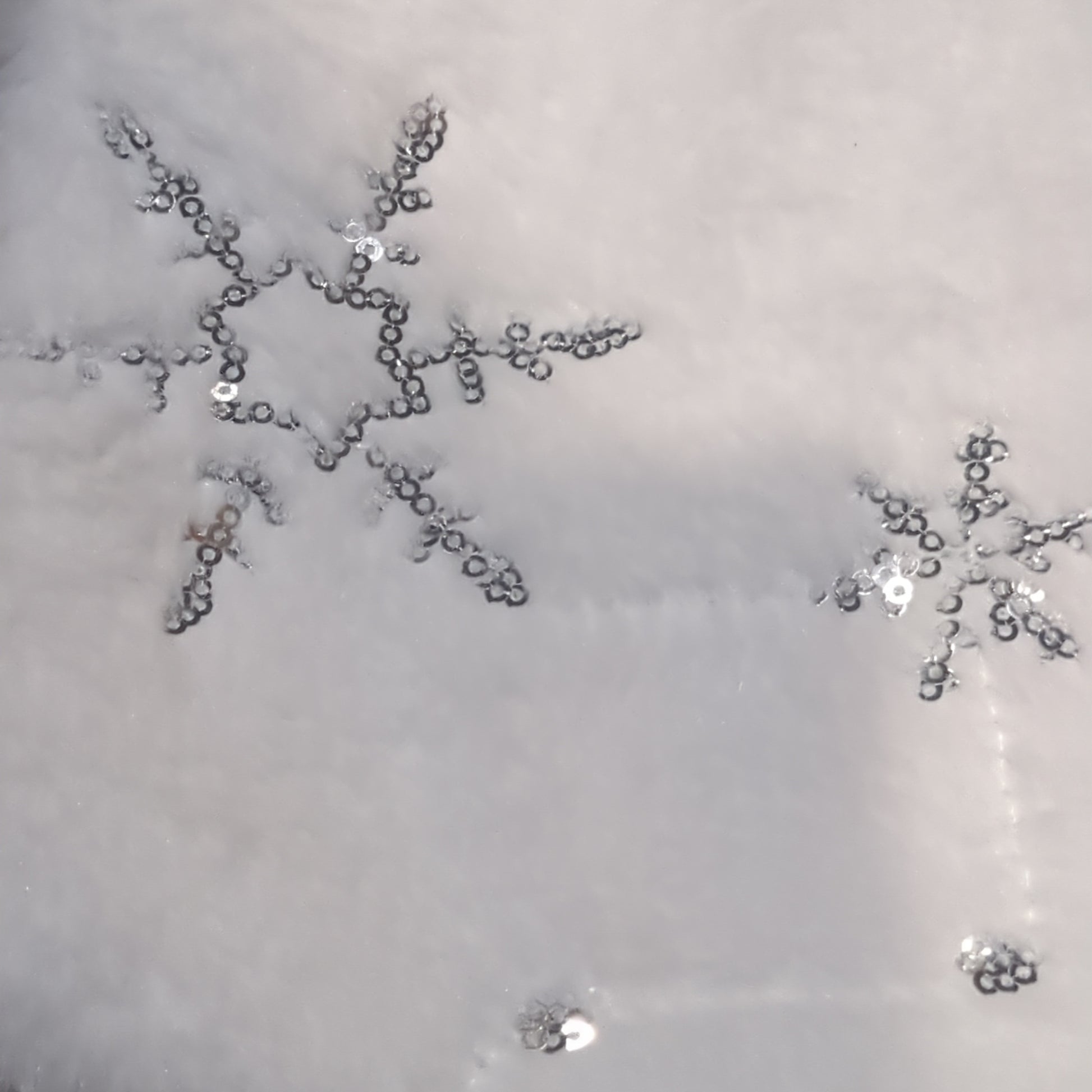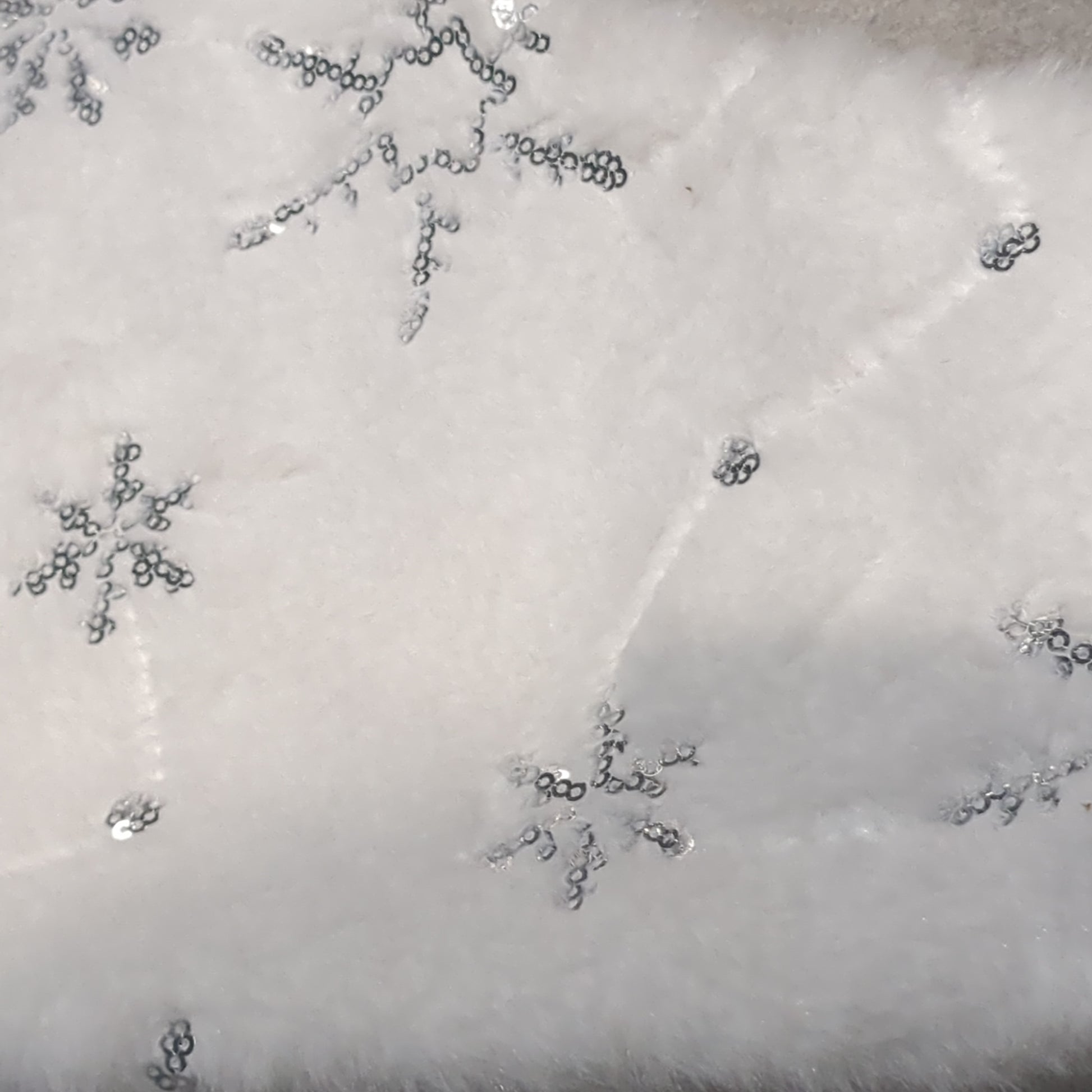 White fuzzy stocking with silver snowflakes. Price is for one.