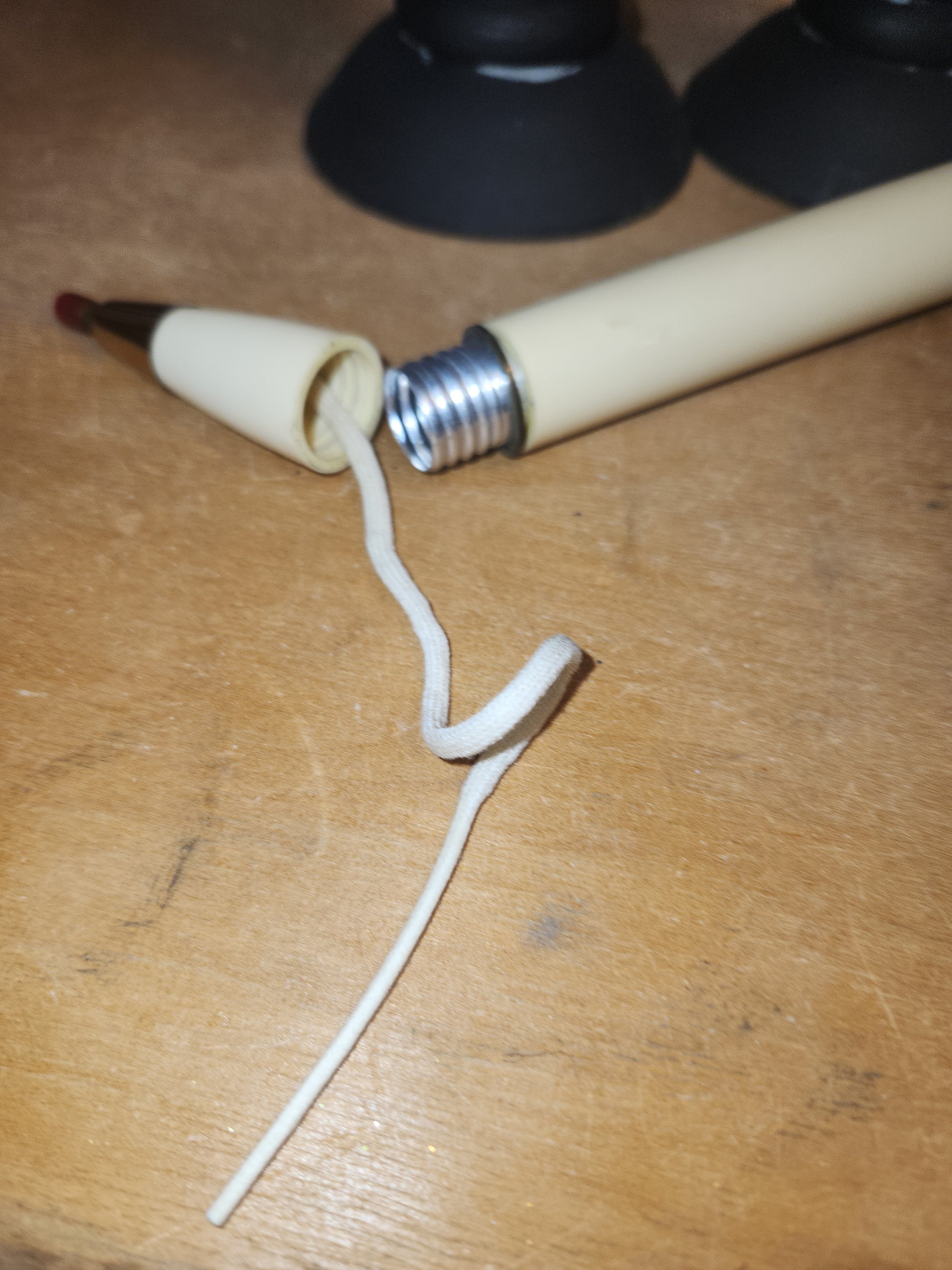 This is a set of 2 unused Refillable Candlesticks. The red caps are not broken and both are present. There There is some sticky residue from prior owner sticking it into holders. They are ivory maybe a touch yellowed. There are no major scratches seen and nothing missing or broken. They are just a bit over 12" long diameter of just over 1" They would sit better with rubber grips that are not on the Candlesticks. Please see photos as they are part of the description as they will show you what you will recieve.