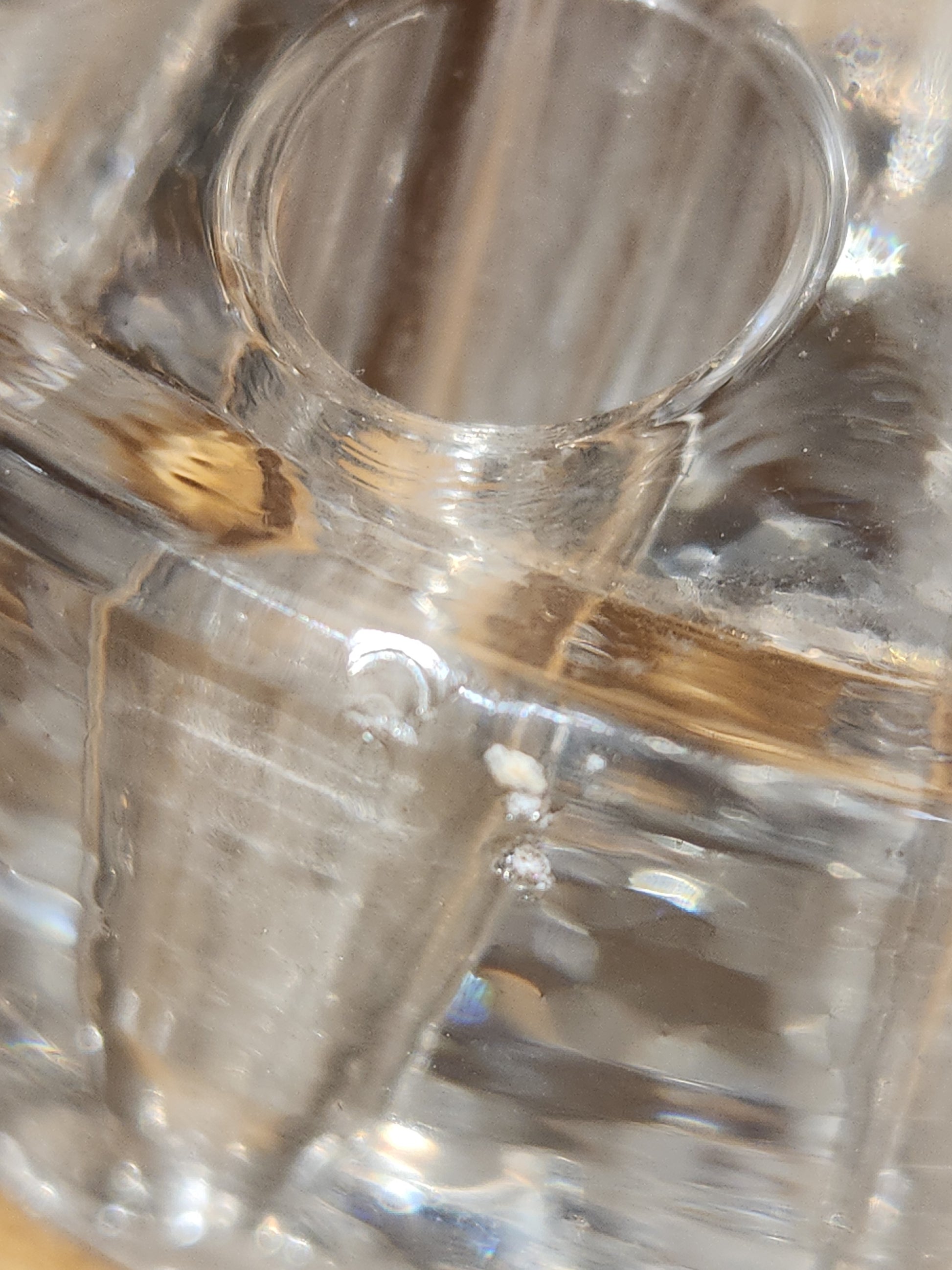 This flower frog is 3" in diameter at top rim, 2 11/16" for bottom diameter. 1" tall to the rim, but 1 1/2" to the very top. I tried this in several different brands of wide mouth jars , and they fit perfectly, measure your jar! It would be beautiful in an aqua jar for easy to do flower arrangements. I feel 2 flea bits along the top rim. I don't see any cracks. Chips flea bites in the top portion of it, where the holes are.\n On the bottom, there are areas of chipping, not sure. If it was made during manufacturing or happened over time. Please see the photos you can see this for yourself. I am sure it does not affect anything , but it has rather small holes for a stem to go through. Please see photos as they are part of the description