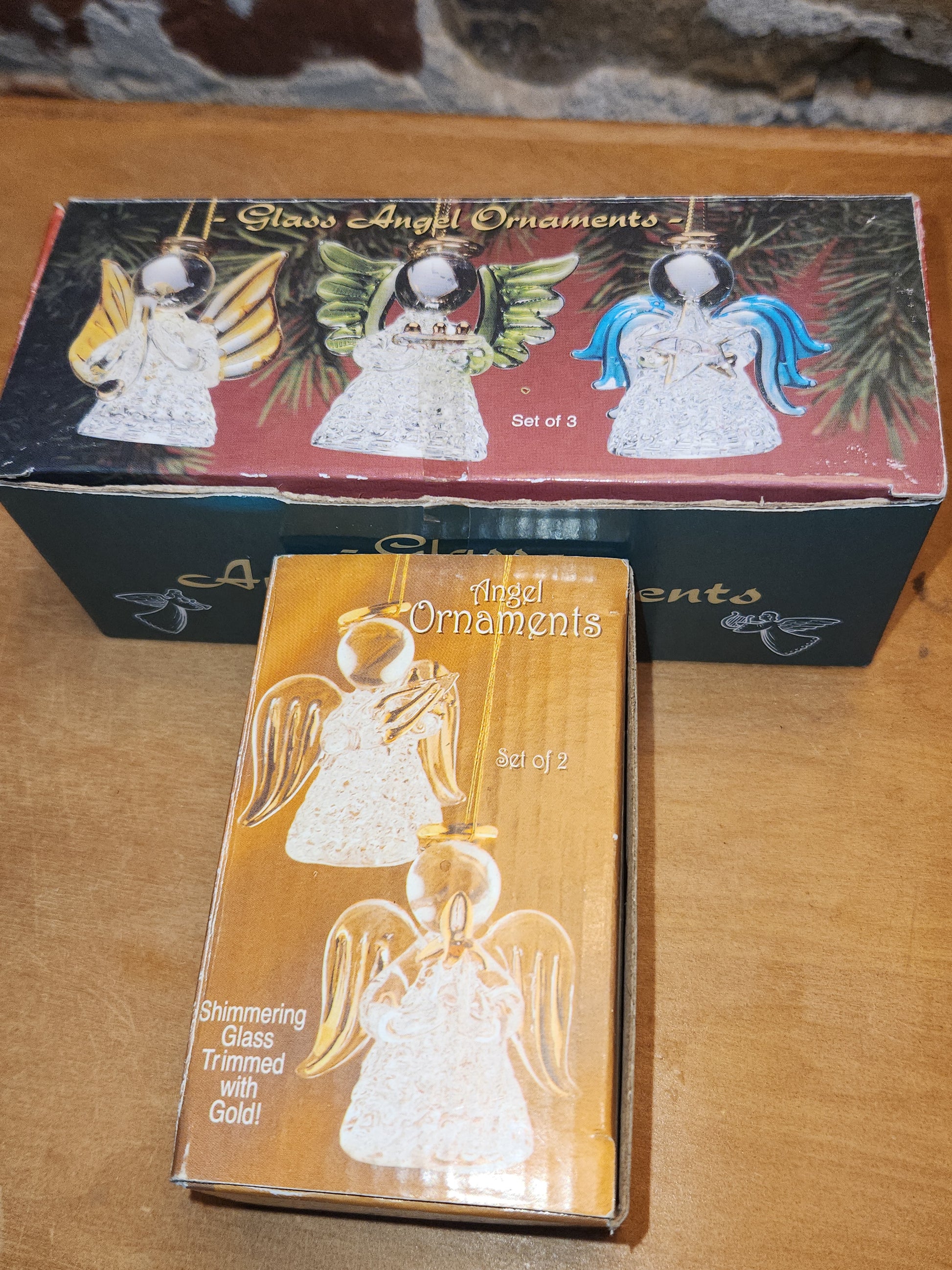 Vintage Giftco Glass Angel Ornaments 2 Different Sets in Original Boxes 5 angels ang91
