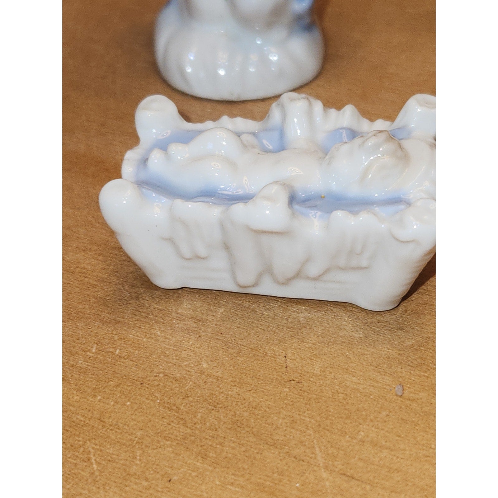 Mary and baby Jesus in good condition. It is just the two of them, no Joseph. I hope someone has a Joseph and needs this for him. But the two of them are also beautiful She is just over 3 1/2". I see no chips or cracks. Please see photos as they are part of the description