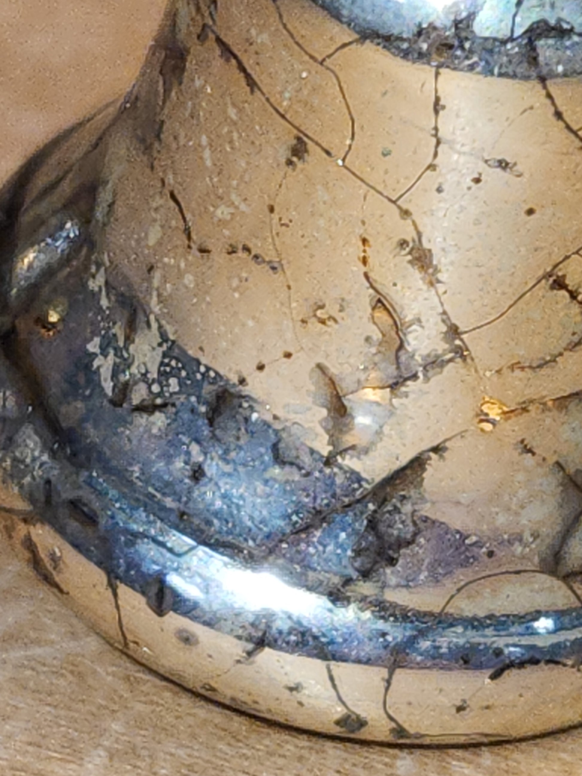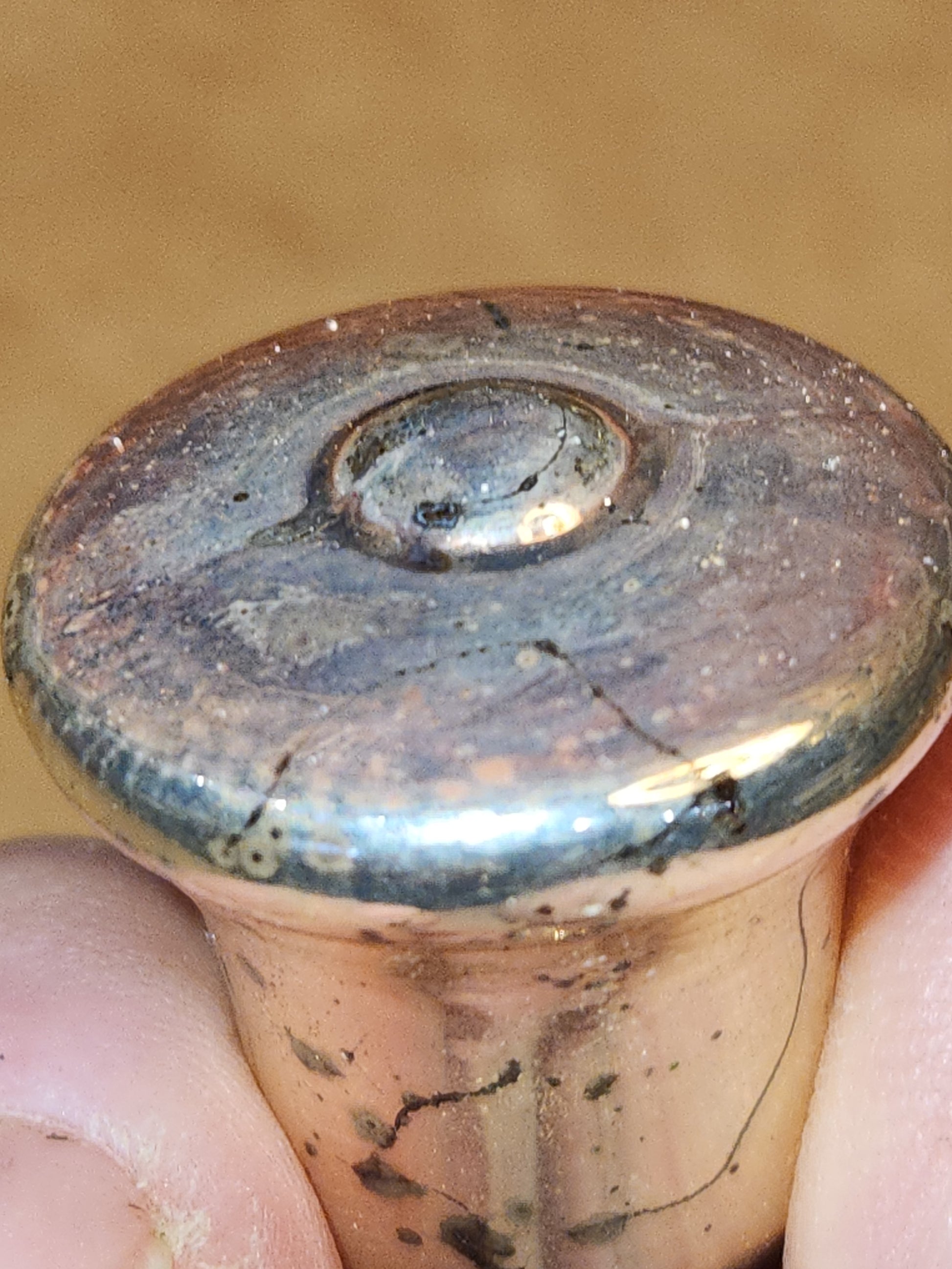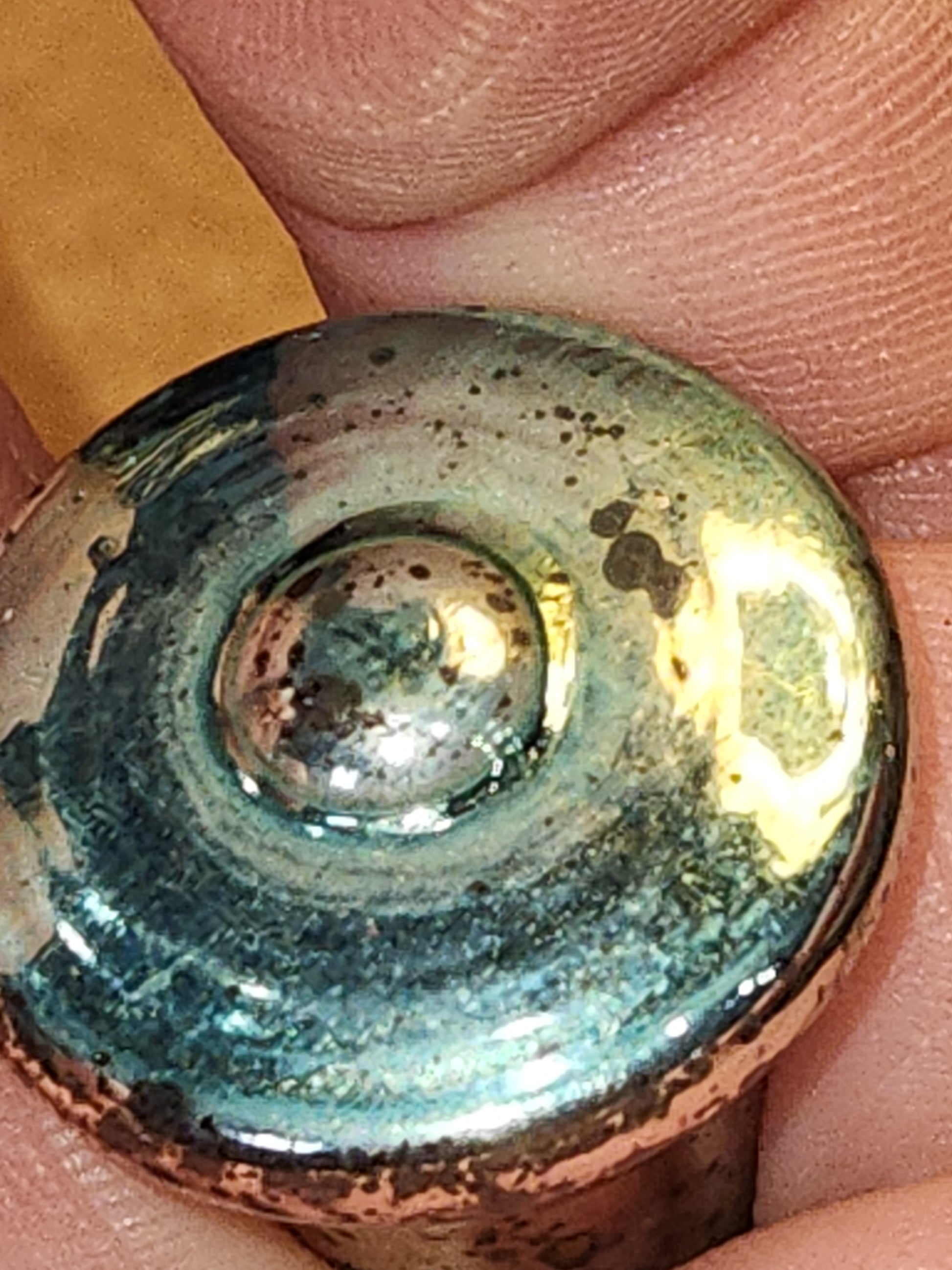 This is a set of 3 vintage mercury glass ornaments. They are unique, they have no top, just a wire hanger from a hole in the top. The ornamenta are 1" tall just to the top of the ornament, not the top of the hanger. When buying vintage ornaments, you may be getting discoloration, paint loss, crazing and ruined boxes, please be aware of this before ordering. Please see photos as they part of the description.